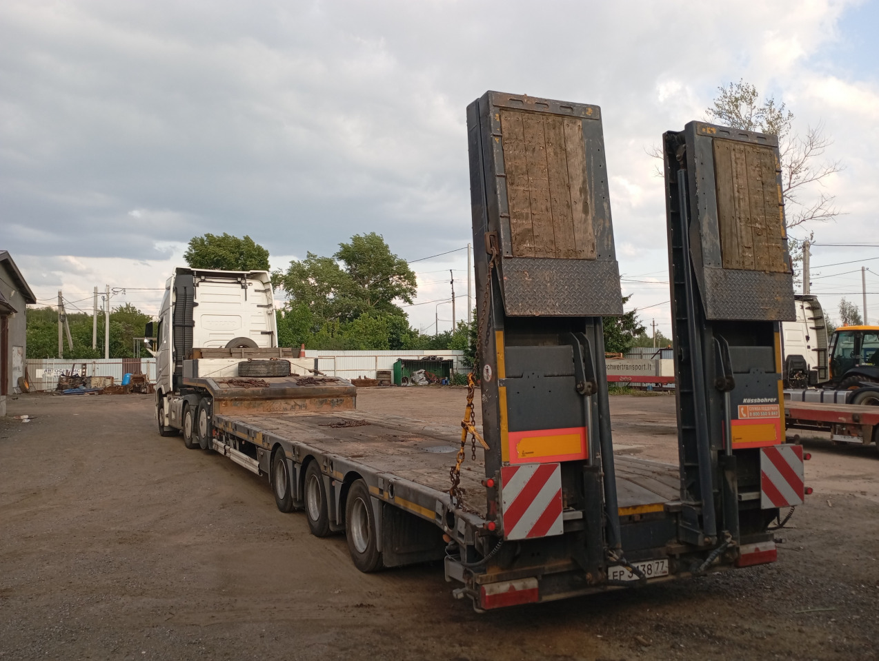 Мы располагаем специализированными низкорамными тралами полуприцепами с уширителями до 3100 мм, предназначенными для перевозки негабаритных погрузчиков и экскаваторов.