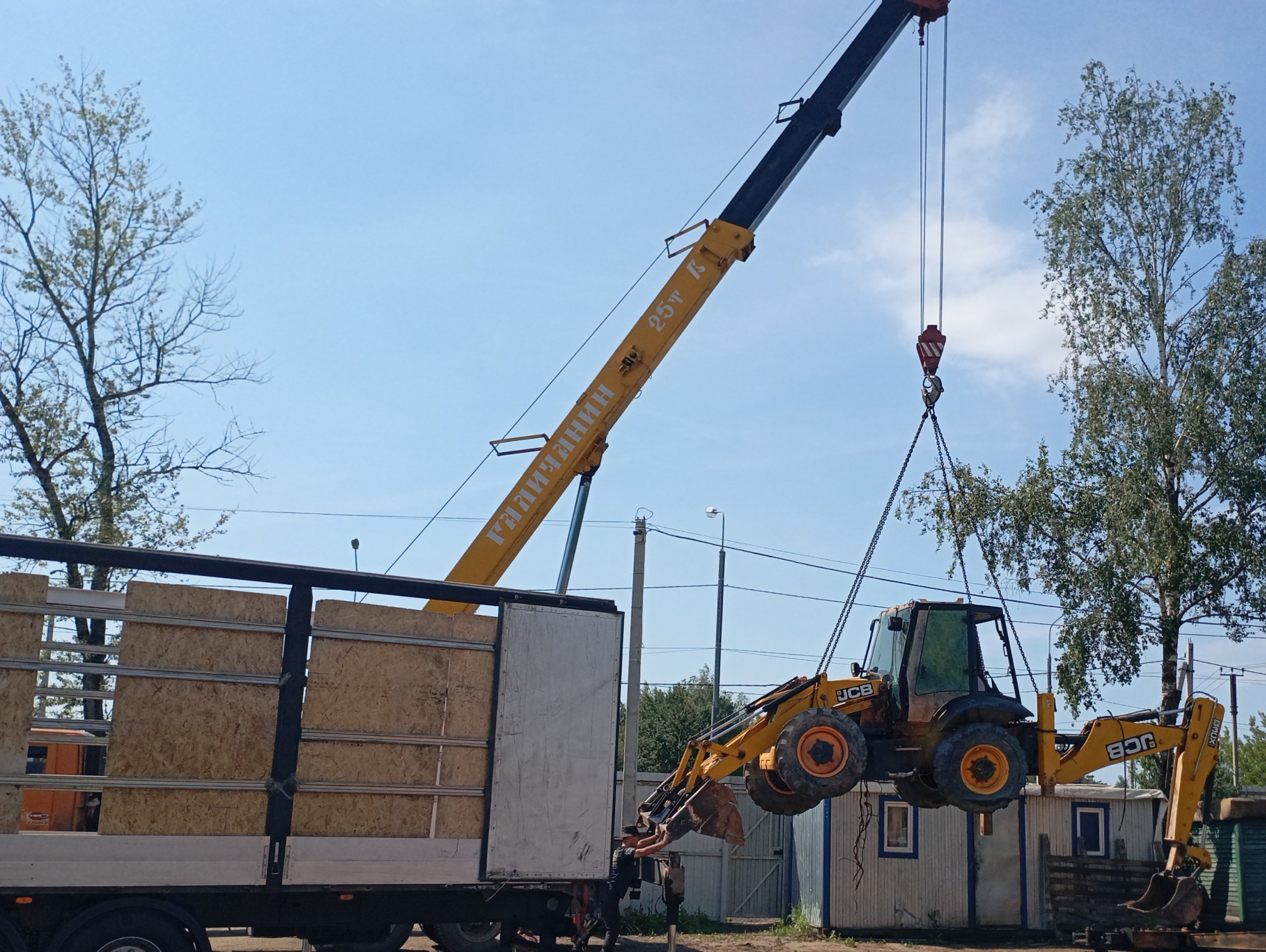 Грузоперевозка экскаватора-погрузчика площадкой низкорамником