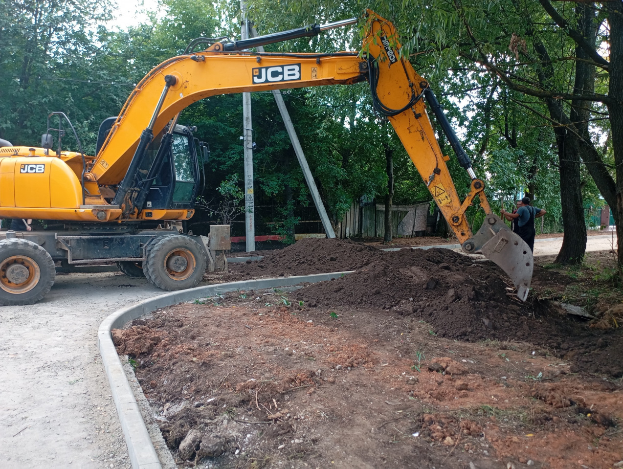 При наличии эначительного объема работ, используют услуги колесного экскаватора JCB-160 с планировочной насадкой, специальным ковшом для планировки, имеющим широкую плоскую кромку.
