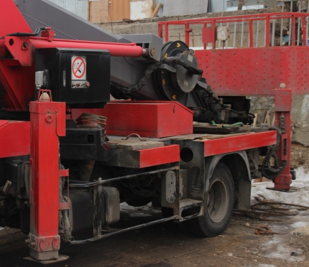 Платформа такой машины имеет размеры: 2000х4000мм, и максимальную грузоподъемность до 800 кг. (для автовышки со стрелой 16 метров) и до 1000 кг. (для автовышки со стрелой 22 метра).