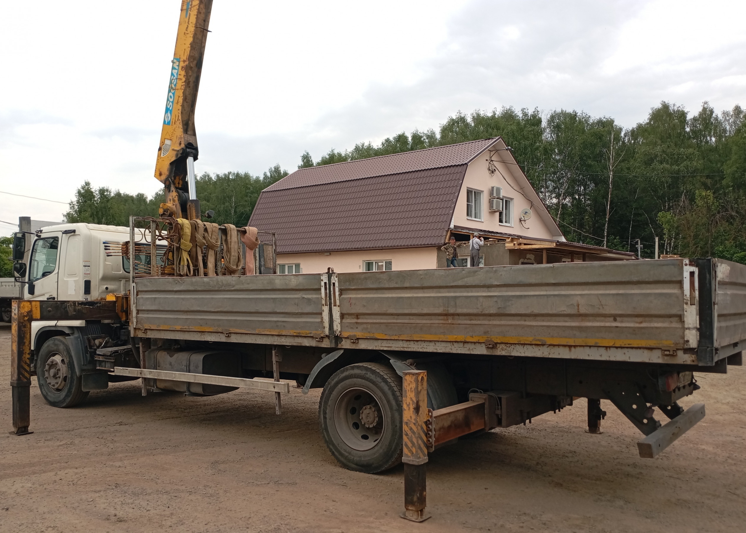 Мы эксплуатируем самые современные и качественные грузовые автомобили с крановой манипуляторной установкой (КМУ) со стрелой для погрузки и перевозки разнообразных строительных и промышленных грузов.