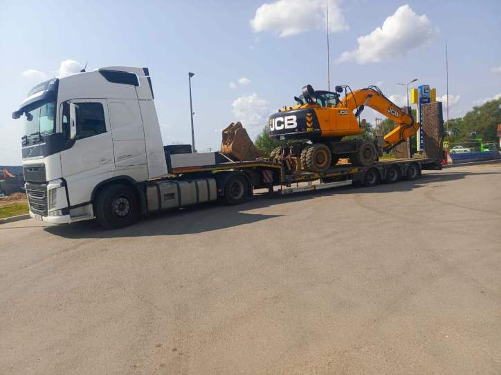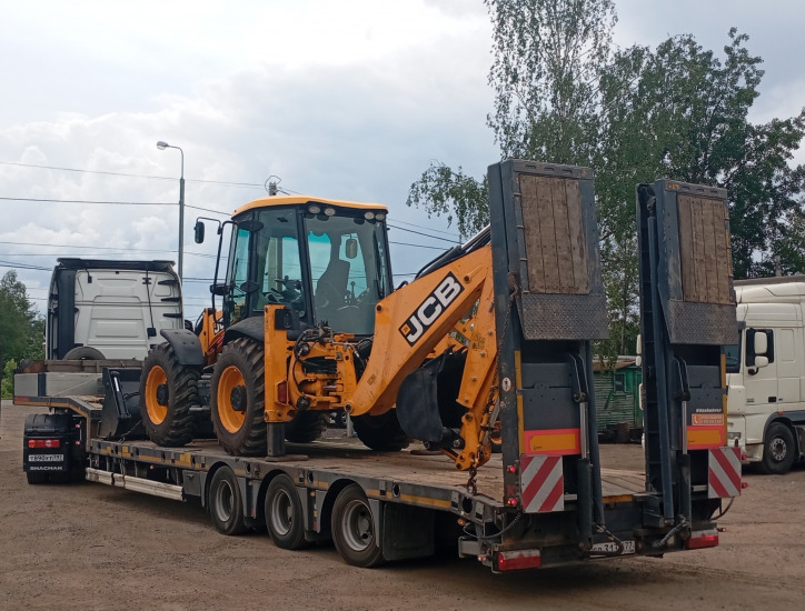 Перевозка колесного экскаватора JCB на объект заказчика