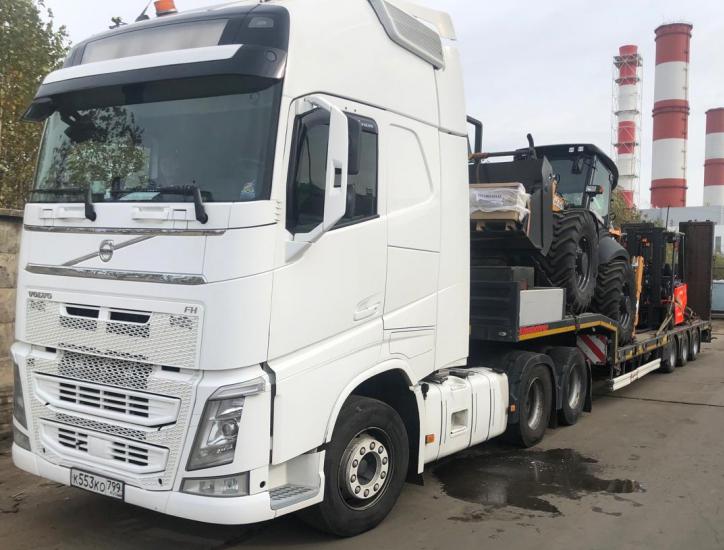 Перевозка экскаватора погрузчика JCB 3CX и вилочных погрузчиков тралом низкорамником с аппарелями