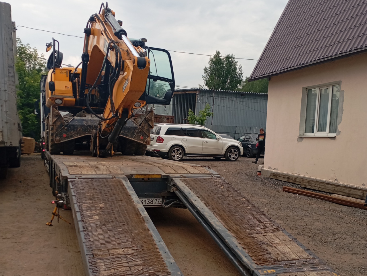 Колесный экскаватор готовится к отправке на объект заказчика на трале