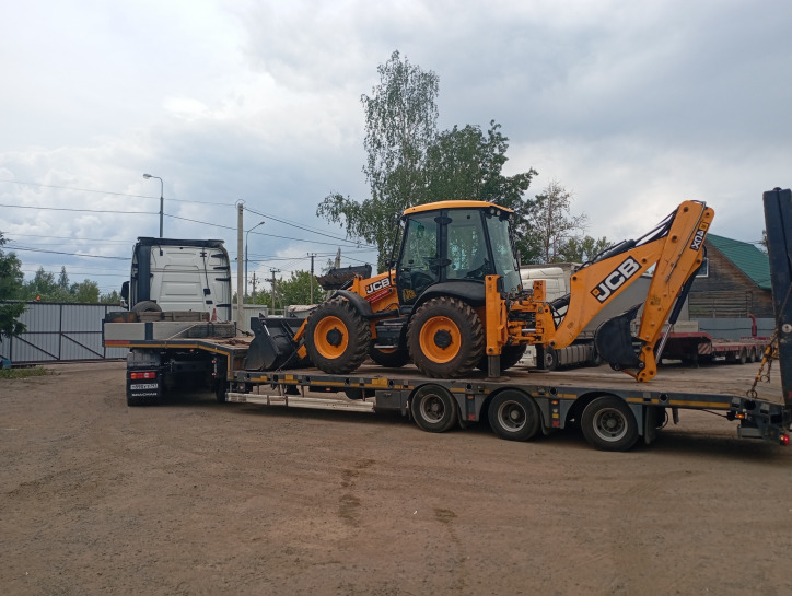 Грузоперевозка экскаватора-погрузчика площадкой низкорамником