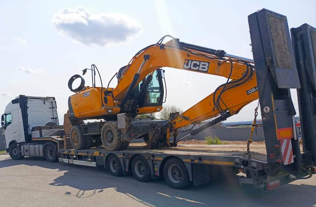 Экскаватор-погрузчик JCB 4CX выезжает на объект заказчика на трале