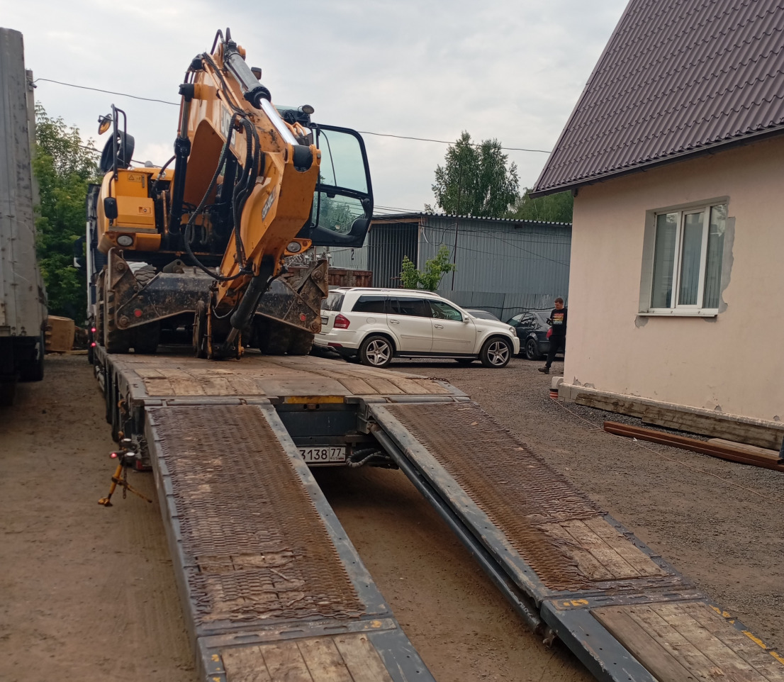 Колесный экскаватор готовится к отправке на объект заказчика на трале