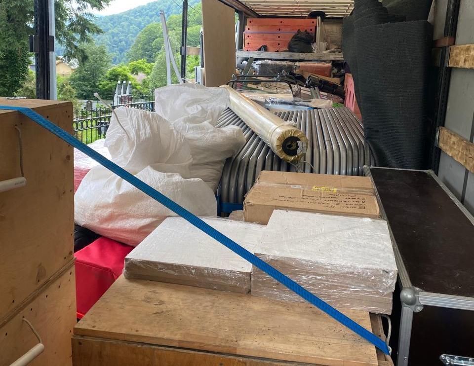 Погрузка и перевозка оборудования для проведения массовых мероприятий. Боковая растентовка фуры.