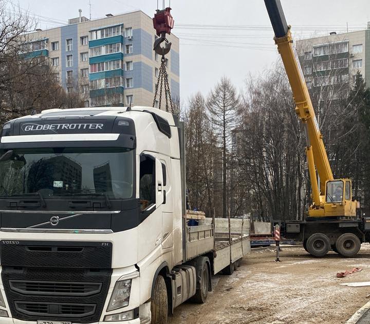 Перевозка опалубки открытым полуприцепом с верхней погрузкой
