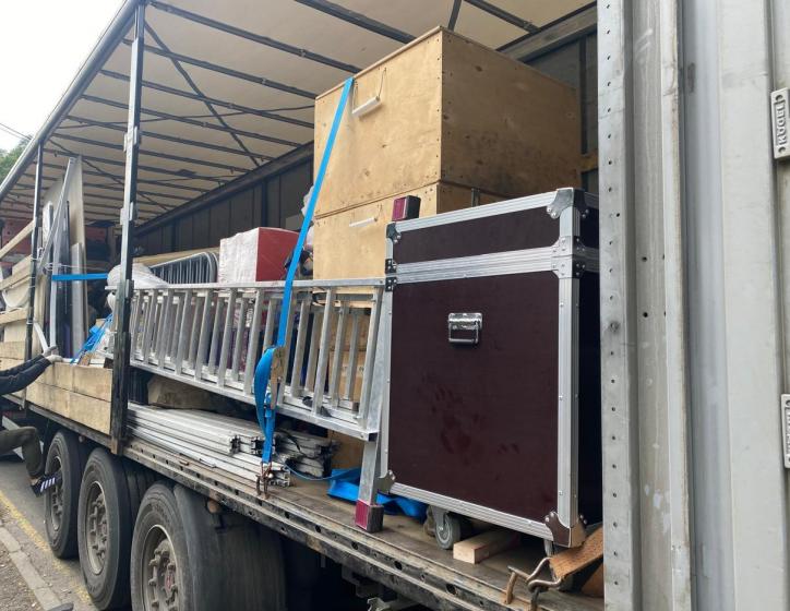 Погрузка и крепление концертного оборудования в кузове фуры.