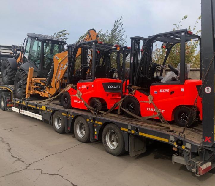Платформа для перевозки спецтехники производит перевозку погрузчиков