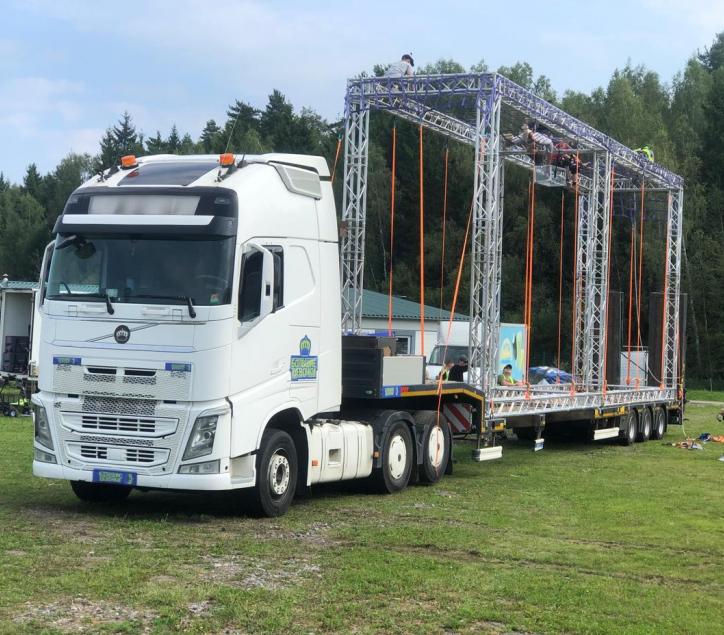 Погрузка и перевозка оборудования для проведения массовых мероприятий. Боковая растентовка фуры.
